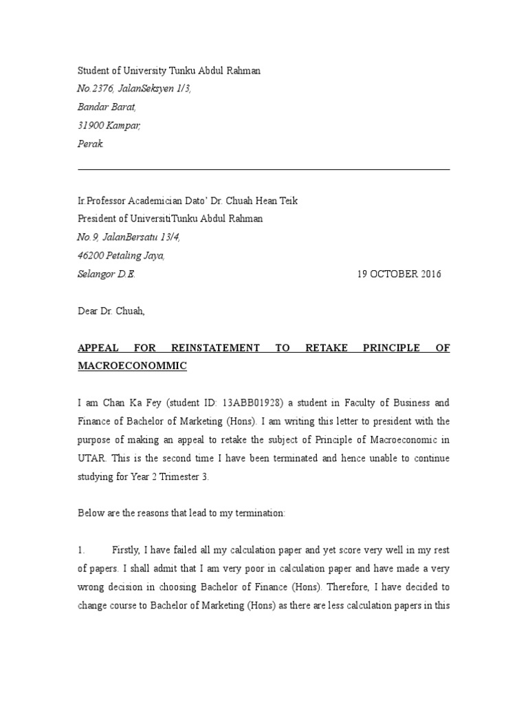 Writing An Appeal Letter For Academic Dismissal Appeal Letter Pdf Sample Included