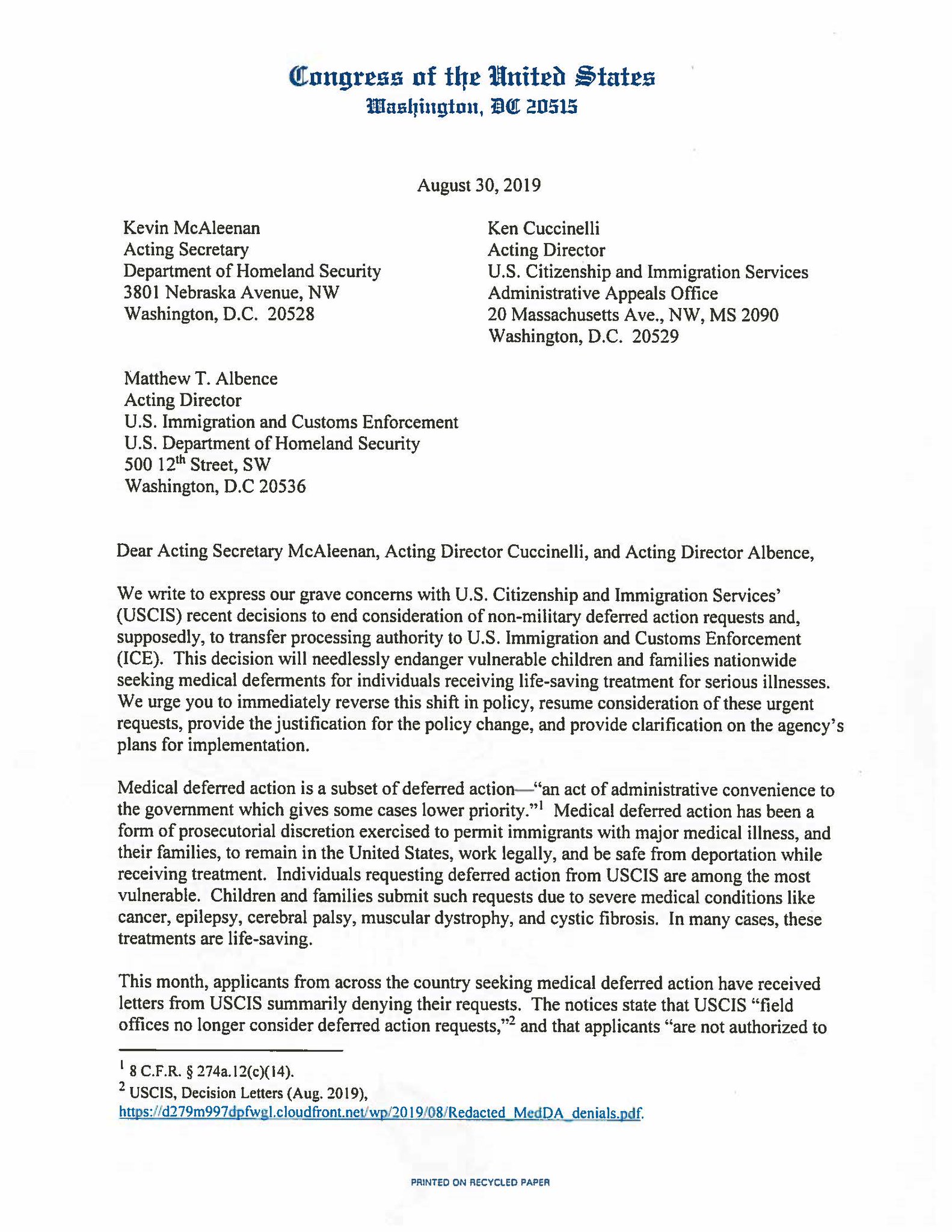 Aila On Twitter Yesterday 127 Members Of Congress Sent A Letter Expressing Concern Over The Termination Of Deferreredaction For Non Military Applicants And Calling For The Immediate Reversal Of The Shift In Policy
